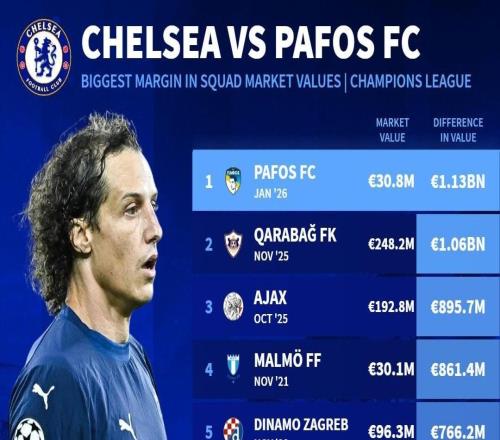 不夠零頭,帕福斯成為切爾西歐冠歷史身價(jià)差距最大的對(duì)手